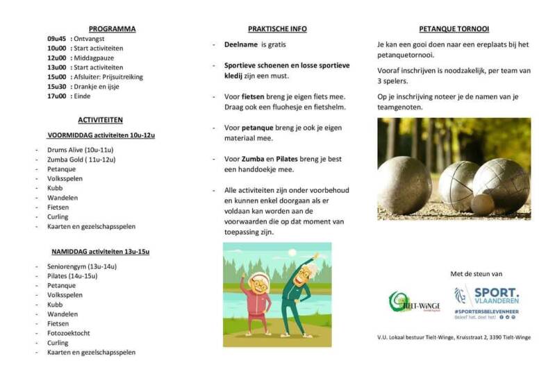 | Donderdag 23 april | Beveren sporthal | senioren, mensen met beperking | Zorgpunt Waasland | ||